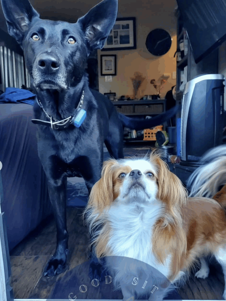 Gazeebo had just started his life with my family and was firmly settled in within months. He made every dog his friend, and he greeted all new humans with a silly dance and happy sneeze. A grumpy gus at night, he had his own little bed he would trudge to “after a long day at the mines” to recharge. Both he and Ranger liked to wake us up with head bonks and snuggling. They were best friends.