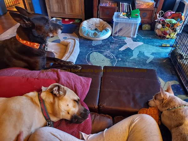 - Boarding dog-aggressive or human-aggressive dogs in our home — in-home sitting available